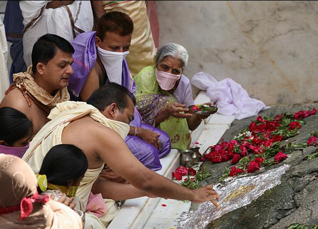 five temples and the first of them is the Jaytaleti. Pilgrims put the sand